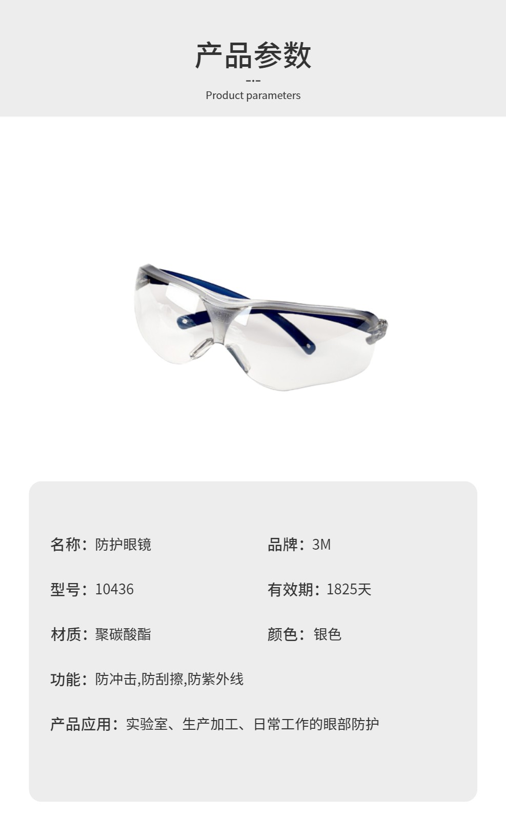 3M 10436 护目镜 骑行防风防尘防护眼镜劳保工业切割防打磨飞溅冲击 1副装