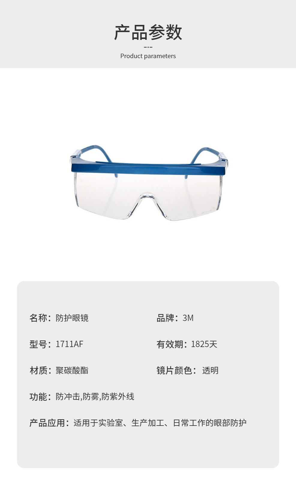 3M 1711AF 护目镜工业切割防飞溅骑行防护眼镜防粉尘防雾 1副装