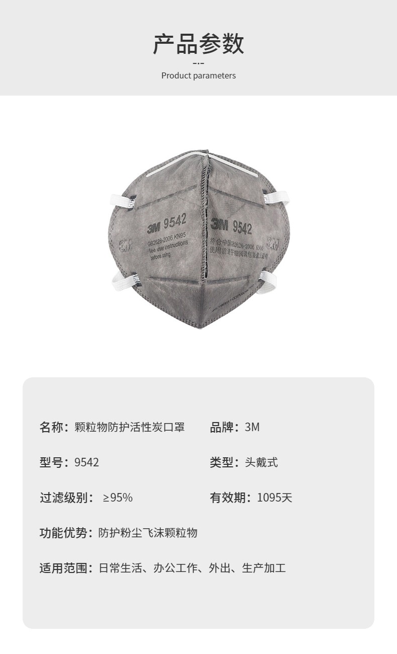 3M 9542 口罩 活性炭头戴式 KN95口罩 25个/盒