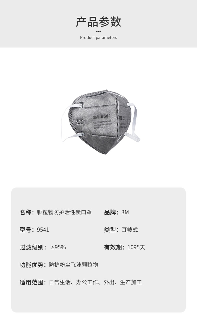3M 口罩KN95活性炭口罩 防甲流飞沫防雾霾防PM2.5防工业粉尘颗粒物花粉防异味耳戴式 9541 独立包装 25只/盒