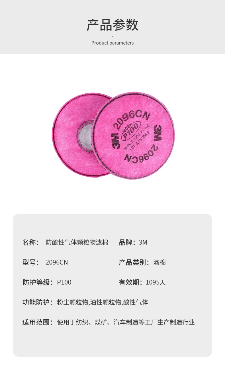 3M 防尘面具配件 2096CN滤棉 过滤各类颗粒物及酸性气体异味 2片装