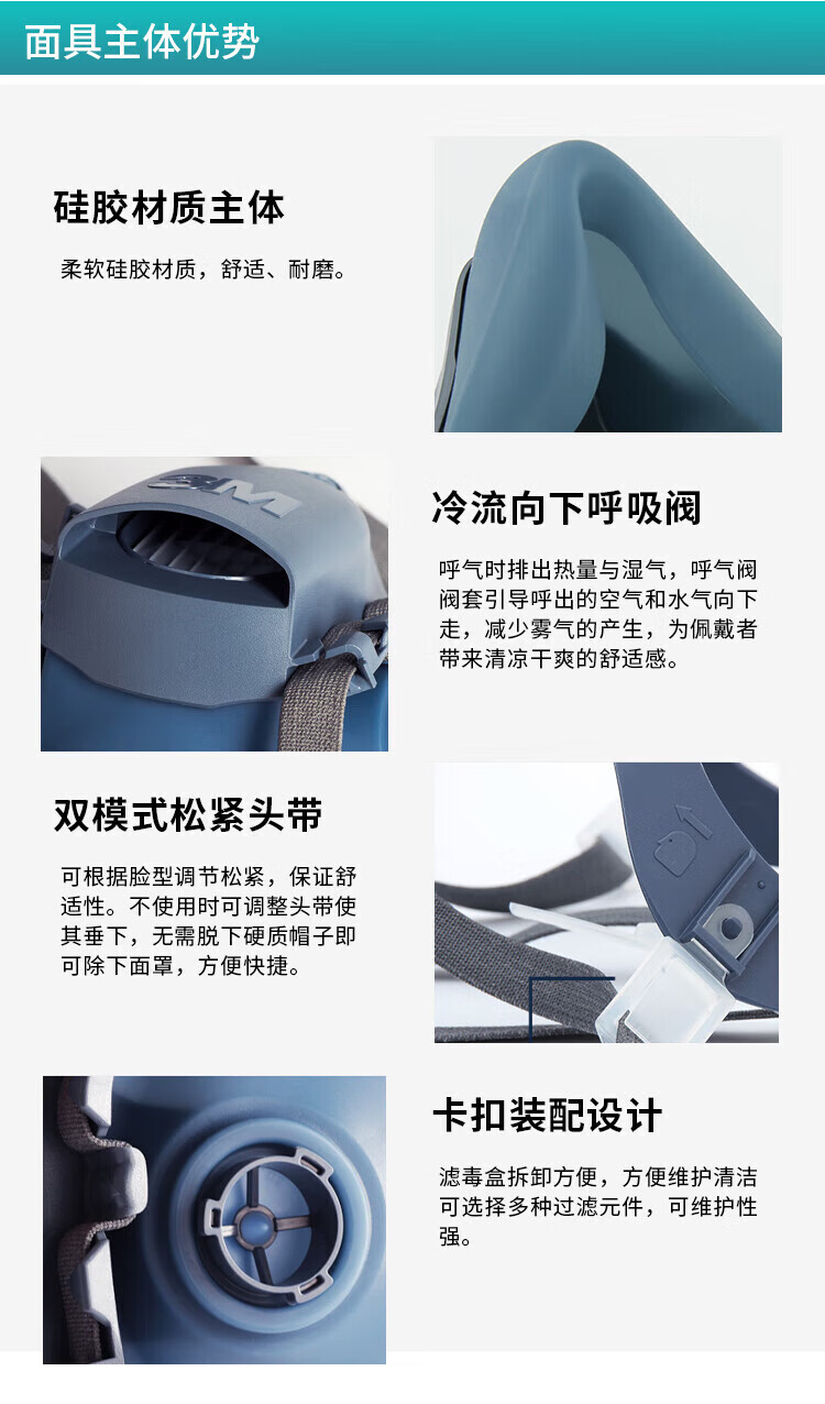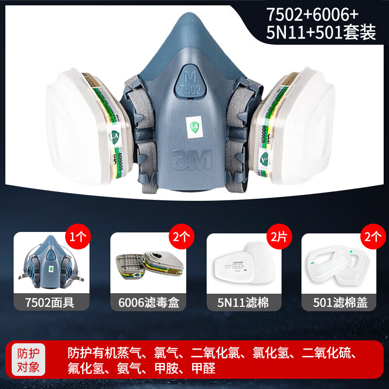 3M 7502硅胶防毒面具口罩 防尘防有机气体农药喷洒化工喷漆 7件套 含7502半面具1个+1对6006滤盒+1对501滤棉盖+2片5N11滤棉