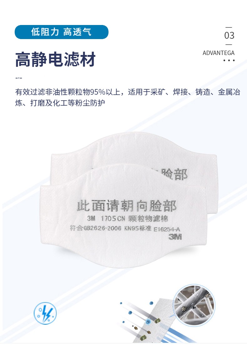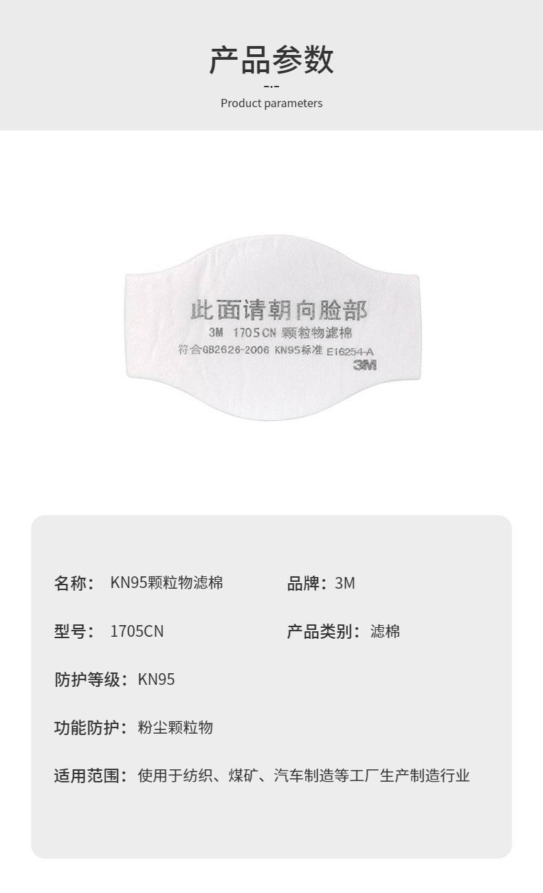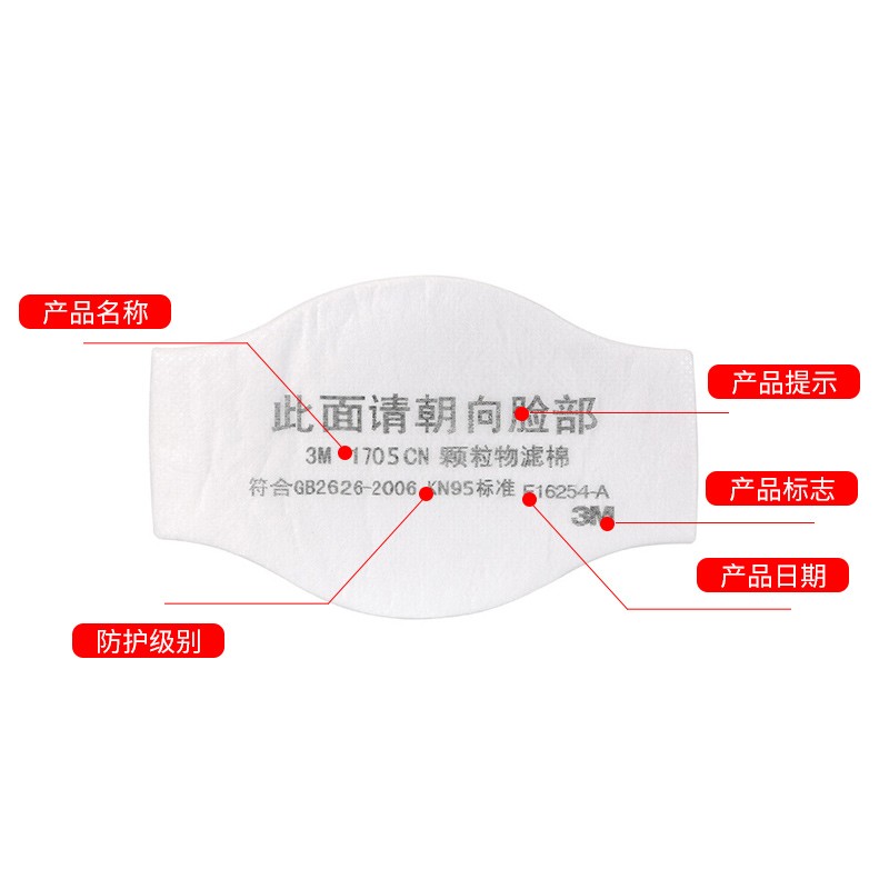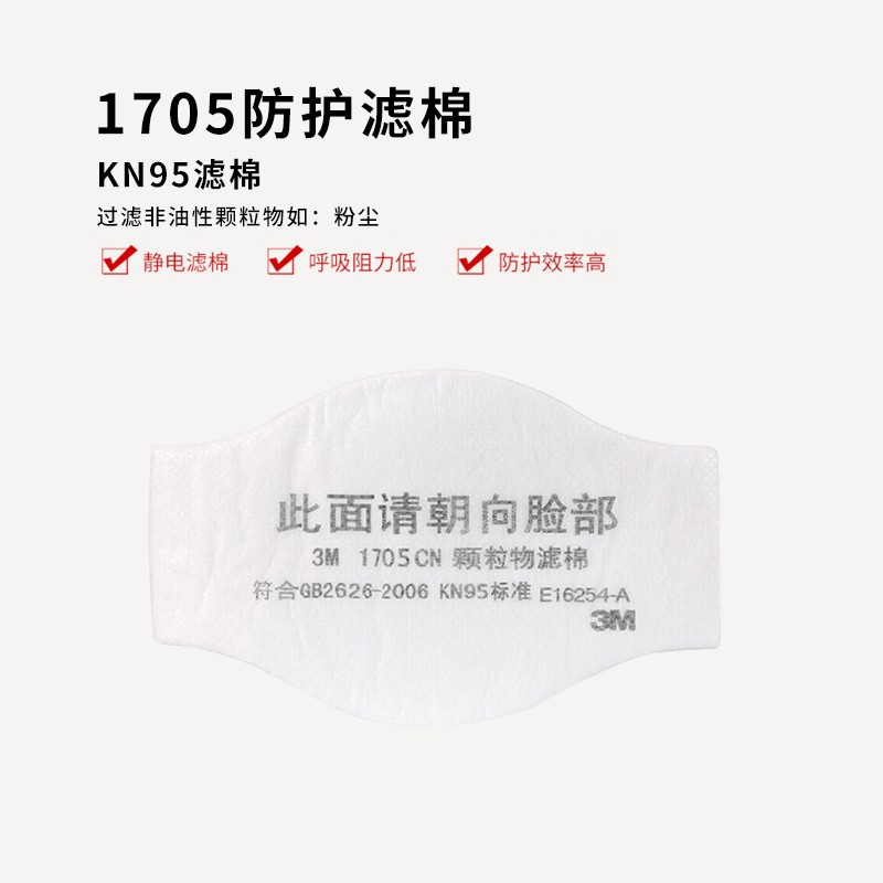 3M 1705CN滤棉 10片/包 防飞沫颗粒物电焊烟 需配1700承接座使用