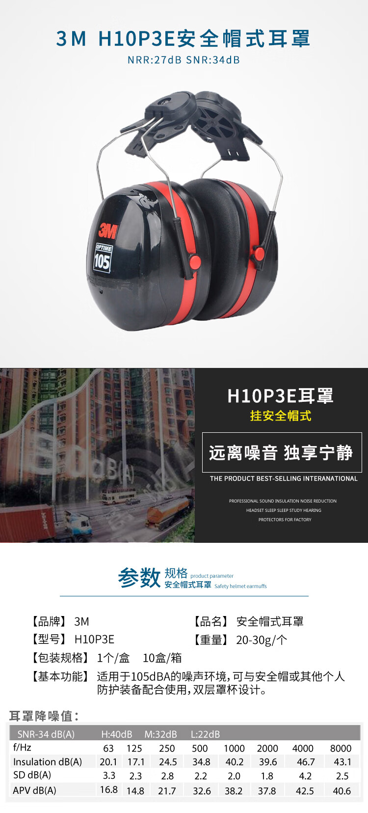 3M H10P3E OPTIME105系列挂安全帽式高降噪型耳罩 1副装