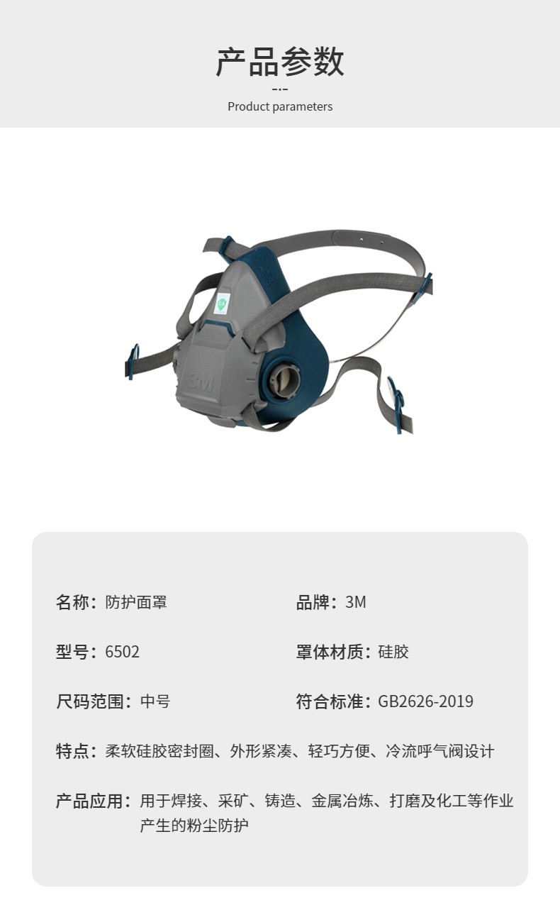 3M 6502硅胶防毒面具主体中号 尘毒两用 防尘甲醛农药喷漆 不含滤毒盒