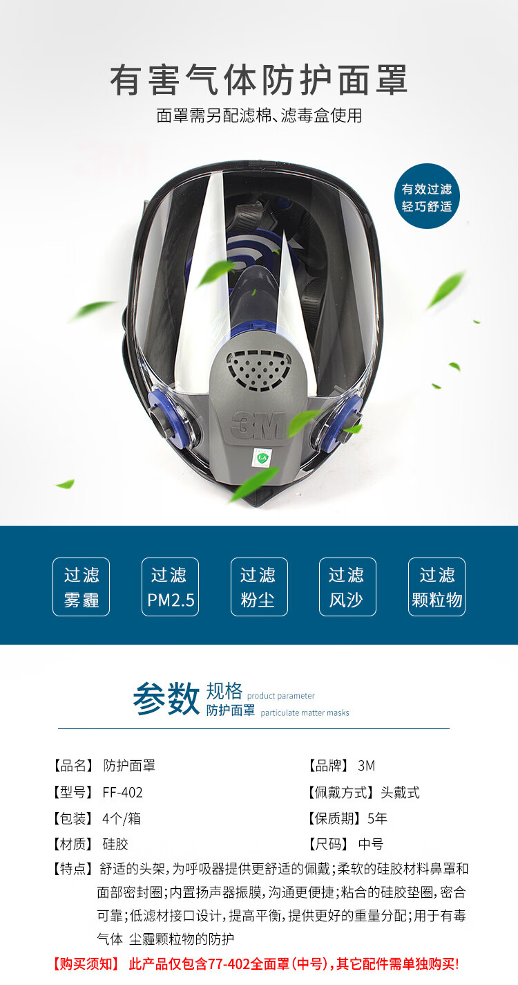 3M FF-402 防毒面具 气体防护喷漆专用 喷农药面具 工业专用 舒适款面具不带滤盒 1个装