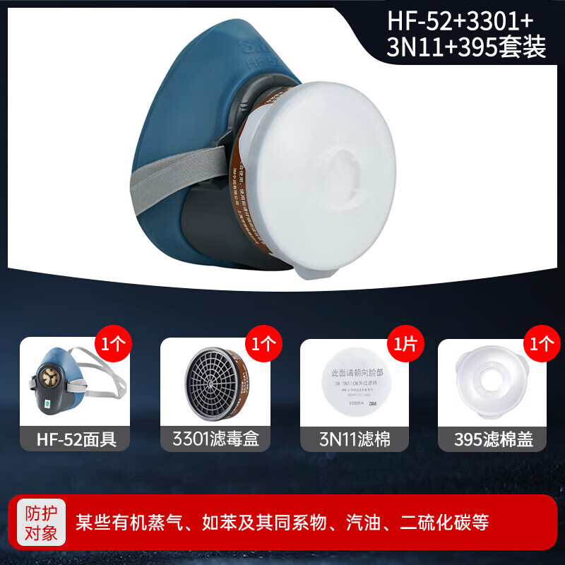 3M HF-52硅胶防毒面具口罩 防尘防有机气体防化工喷漆农药喷洒装修粉尘