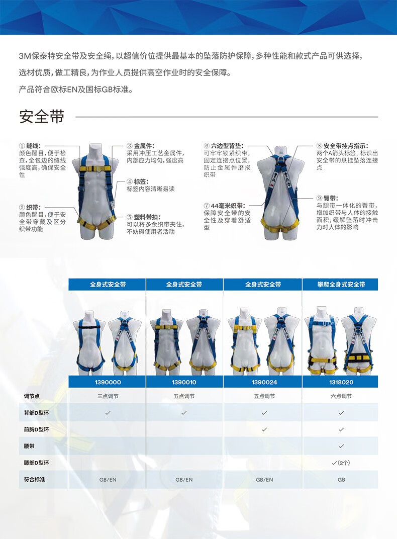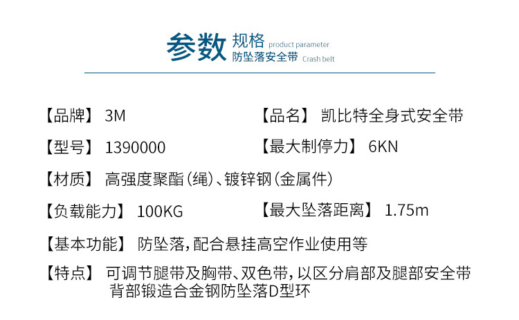 3M 1390000 保泰特安全带 高空作业安全绳救援防坠