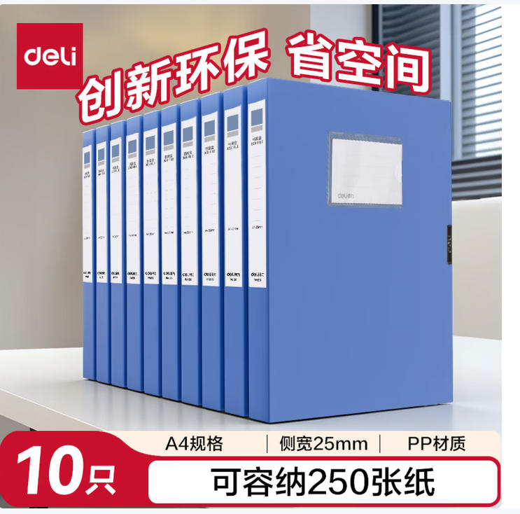 得力(deli)10只25mm档案盒折叠文件盒资料盒粘扣文件收纳盒办公用品财会用品 PA125