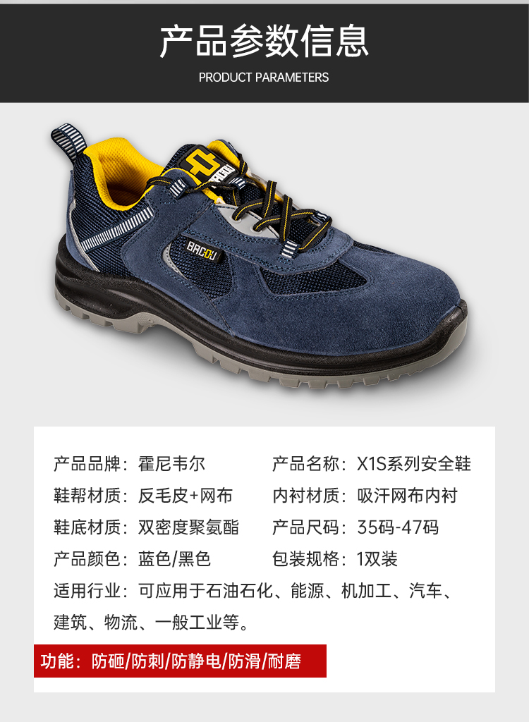 霍尼韦尔 SHX1S23102 防砸防 静电 防刺穿 劳保鞋 黑色