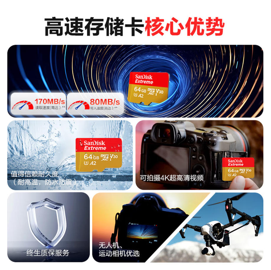 森淼办公 闪迪(SanDisk)512GB TF(MicroSD)内存卡 4K极速金卡A2 V30 U3行车记录仪 运动相机无人机 监控存储卡 读190MB/s