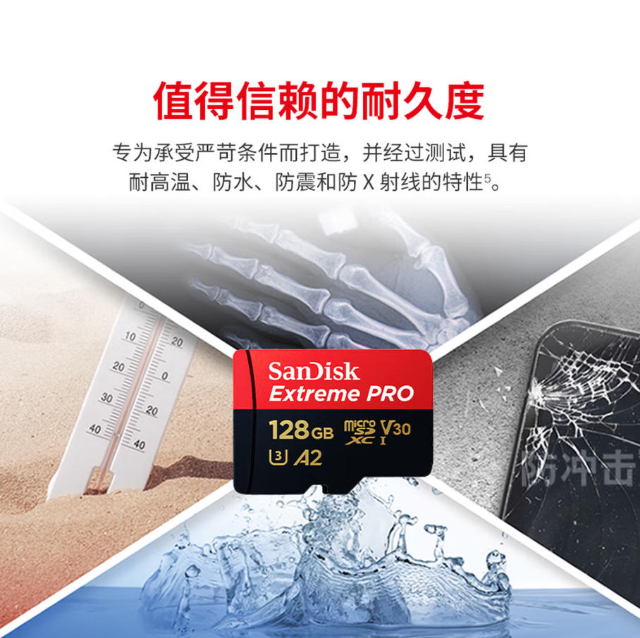 森淼办公 闪迪(SanDisk)128GB TF(MicroSD)内存卡A2 4K V30 U3 C10 至尊超极速移动存储卡 读速200MB/s 写速90MB/s
