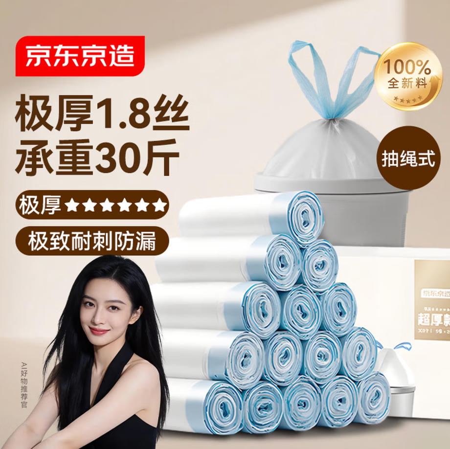 森淼办公 京东京造 抽绳式垃圾袋 实验室垃圾袋 加厚 50*55cm*240只 超厚18μ1.8丝手提 加厚 大号
