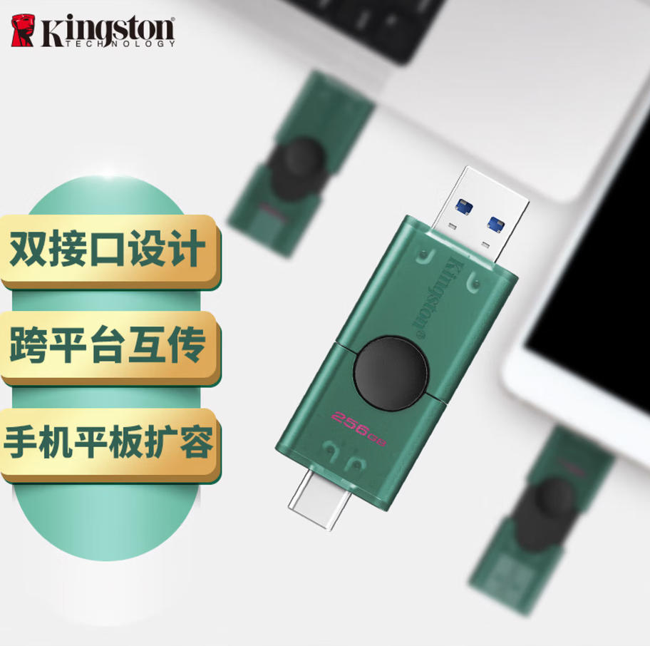 森淼办公 金士顿(Kingston)256GB Type-C USB3.2 双接口 U盘 DTDEG2 实验仪器 双接口 资料存储大容量 优盘 适用于安卓苹果手机平板电脑