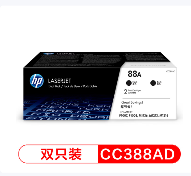 惠普(HP)CC388AD 88A 双支 原装双支黑色硒鼓 适用hp 1106/1108/M1213/1216/M202/M226/M126/M128(定点采购)(此为非招标型号,请老师进行比价后购买)