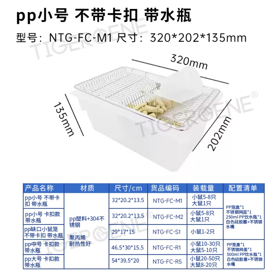 鼠笼实验室鼠盒 鼠笼 小鼠笼小白鼠大白鼠饲养笼子 繁殖笼盒 PP小号不带卡扣带水瓶