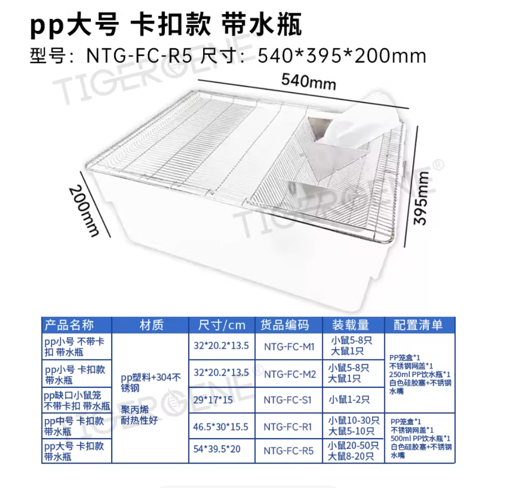鼠笼实验室鼠盒 鼠笼 小鼠笼小白鼠大白鼠饲养笼子 繁殖笼盒 PP大号带卡扣带水瓶