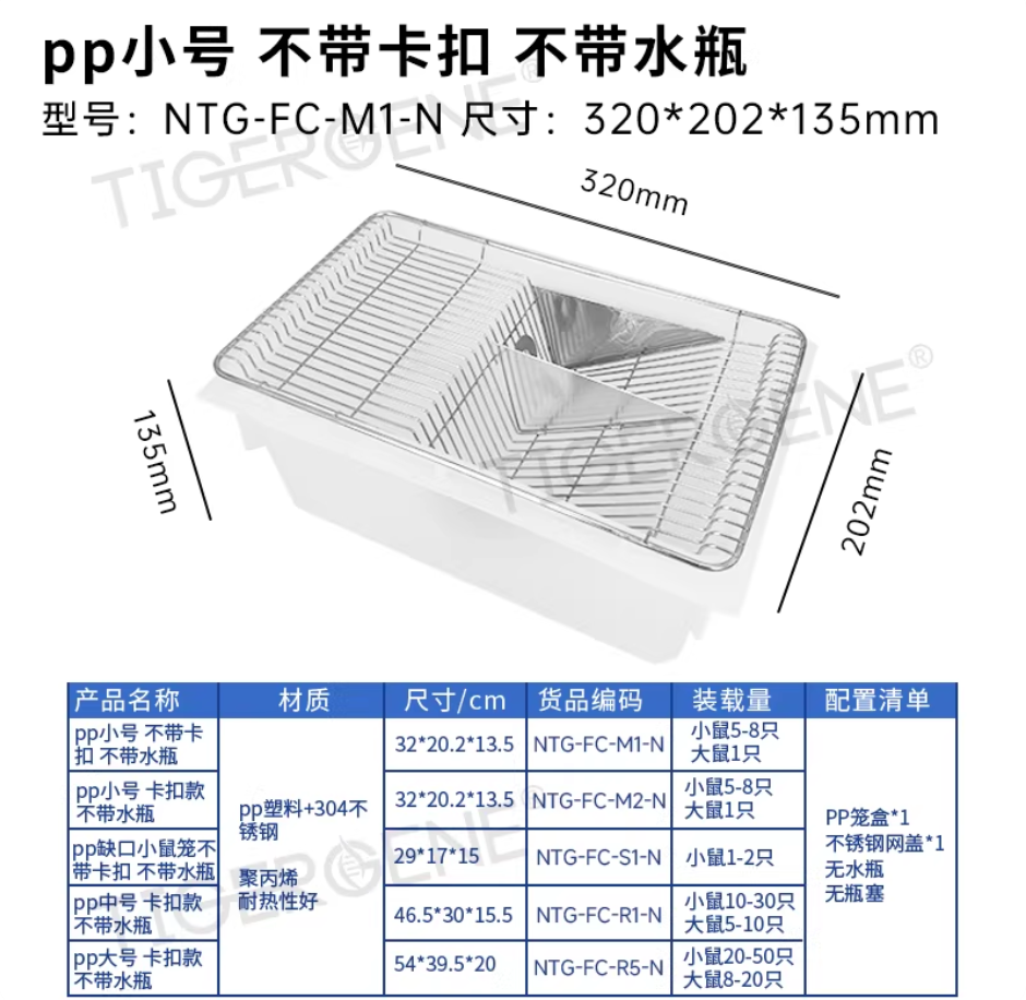 鼠笼实验室鼠盒 鼠笼 小鼠笼小白鼠大白鼠饲养笼子 繁殖笼盒 PP小号不带卡扣不带水瓶
