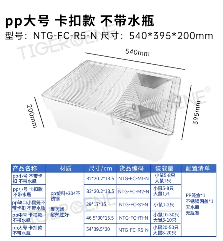 鼠笼实验室鼠盒 鼠笼 小鼠笼小白鼠大白鼠饲养笼子 繁殖笼盒 PP大号带卡扣不带水瓶