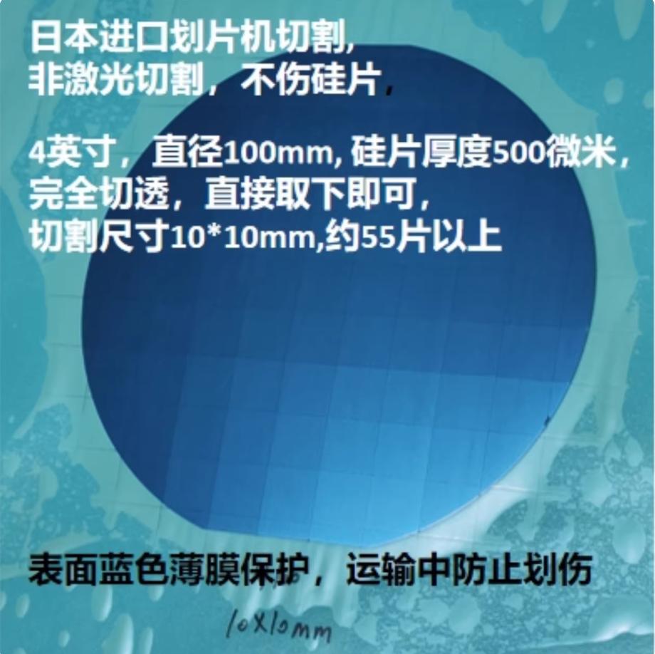 (免掰即用)4寸单抛切10*10mm(约出55片)方形单晶高纯硅片科研抛光AFM镀膜SEM电镜光学生物载体衬底 可定制切割尺寸