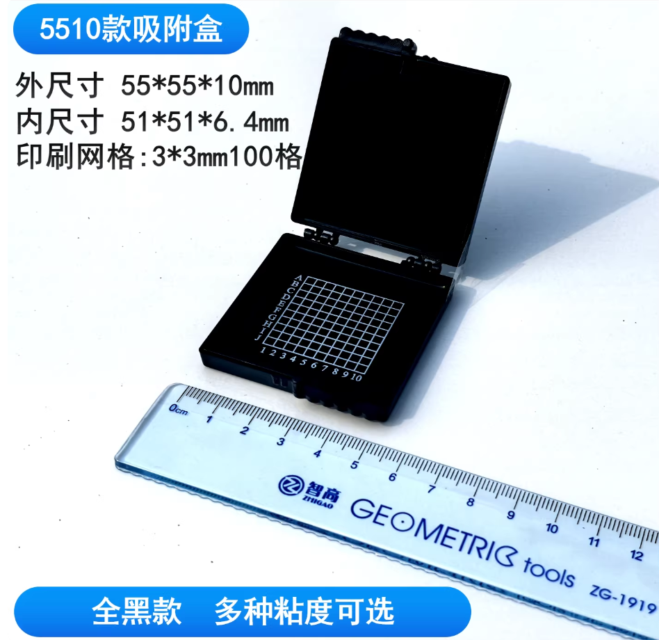 芯片自吸附盒自粘盒硅晶片盒储存盒展示盒凝胶防静电样品盒5510 55*55*10mm全黑