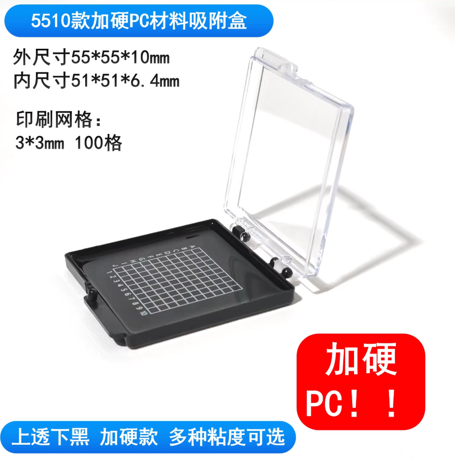 芯片自吸附盒自粘盒硅晶片盒储存盒展示盒凝胶防静电样品盒5510 55*55*10mm上透下黑加硬款