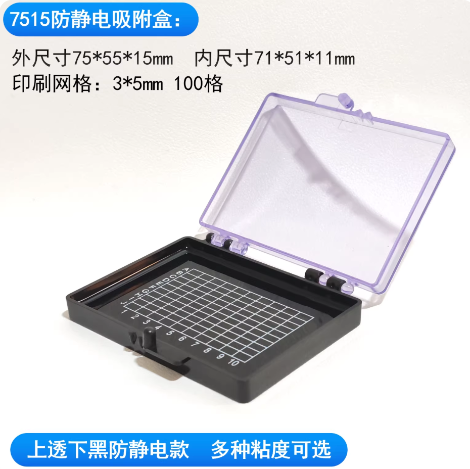 芯片自吸附盒自粘盒硅晶片盒储存盒展示盒凝胶防静电样品盒7515防静电全黑75*55*15mm