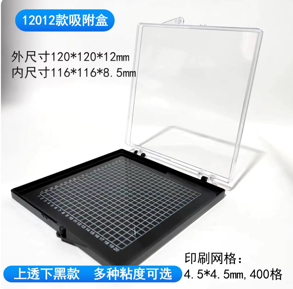 芯片自吸附盒自粘盒硅晶片盒储存盒展示盒凝胶防静电样品盒12012上透下黑120*120*12mm