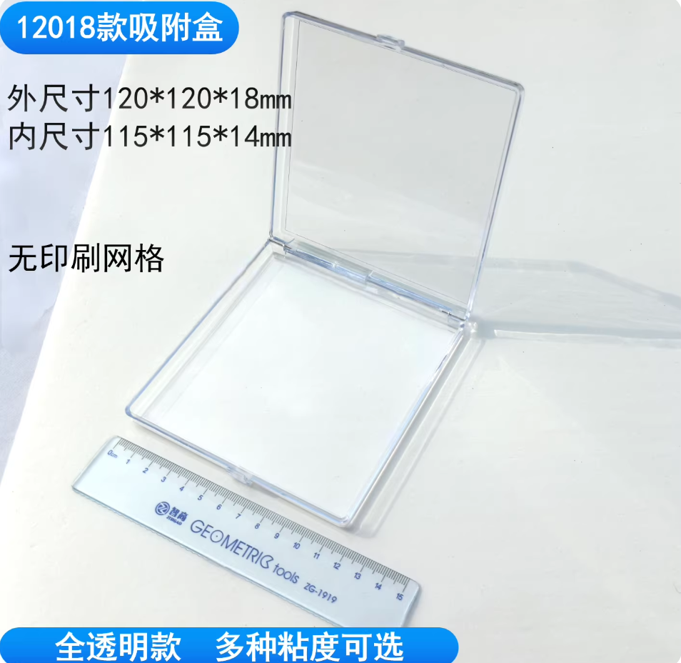 芯片自吸附盒自粘盒硅晶片盒储存盒展示盒凝胶防静电样品盒12018全透无格120*120*18mm