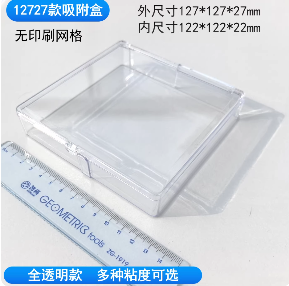 芯片自吸附盒自粘盒硅晶片盒储存盒展示盒凝胶防静电样品盒12727全透127*127*27mm