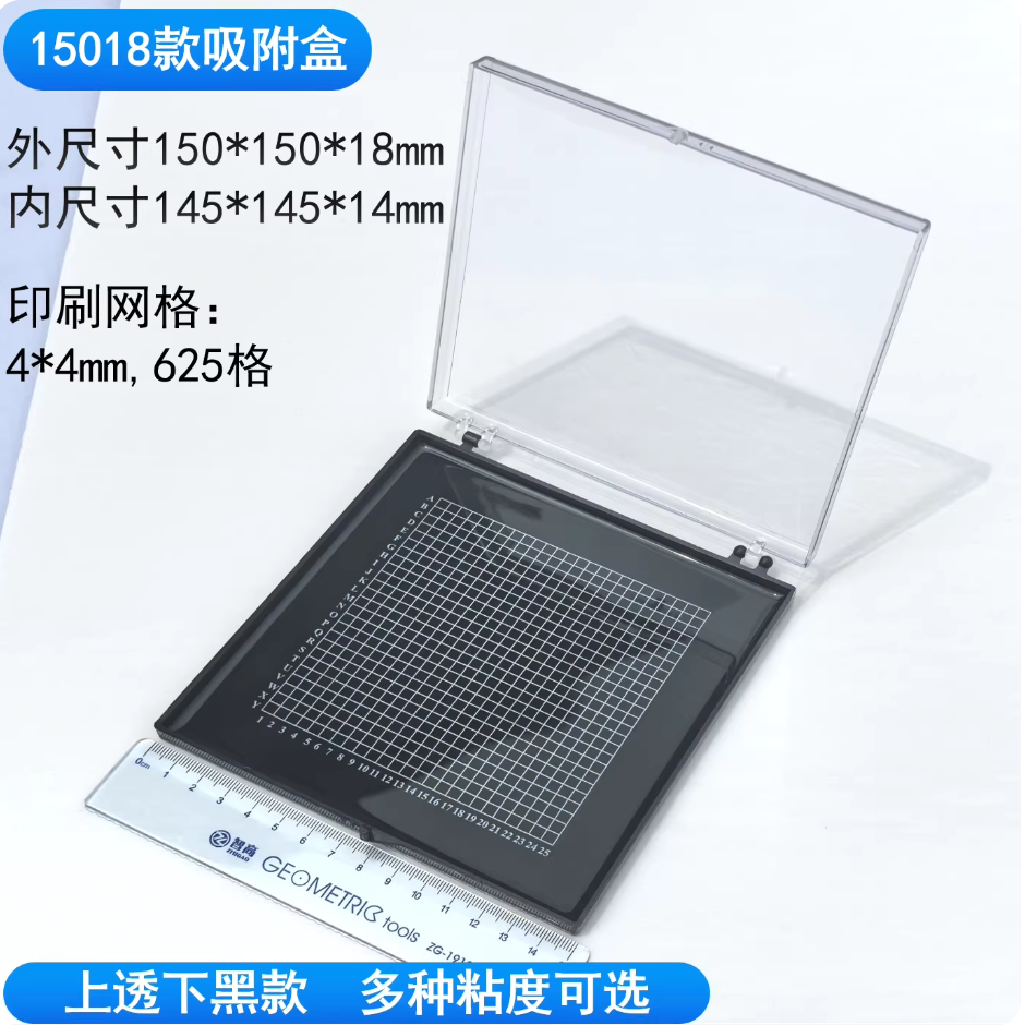芯片自吸附盒自粘盒硅晶片盒储存盒展示盒凝胶防静电样品盒15018上透下黑150*150*18mm