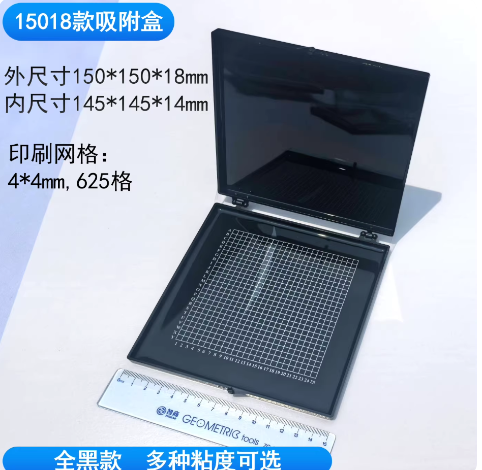 芯片自吸附盒自粘盒硅晶片盒储存盒展示盒凝胶防静电样品盒15018全黑150*150*18mm