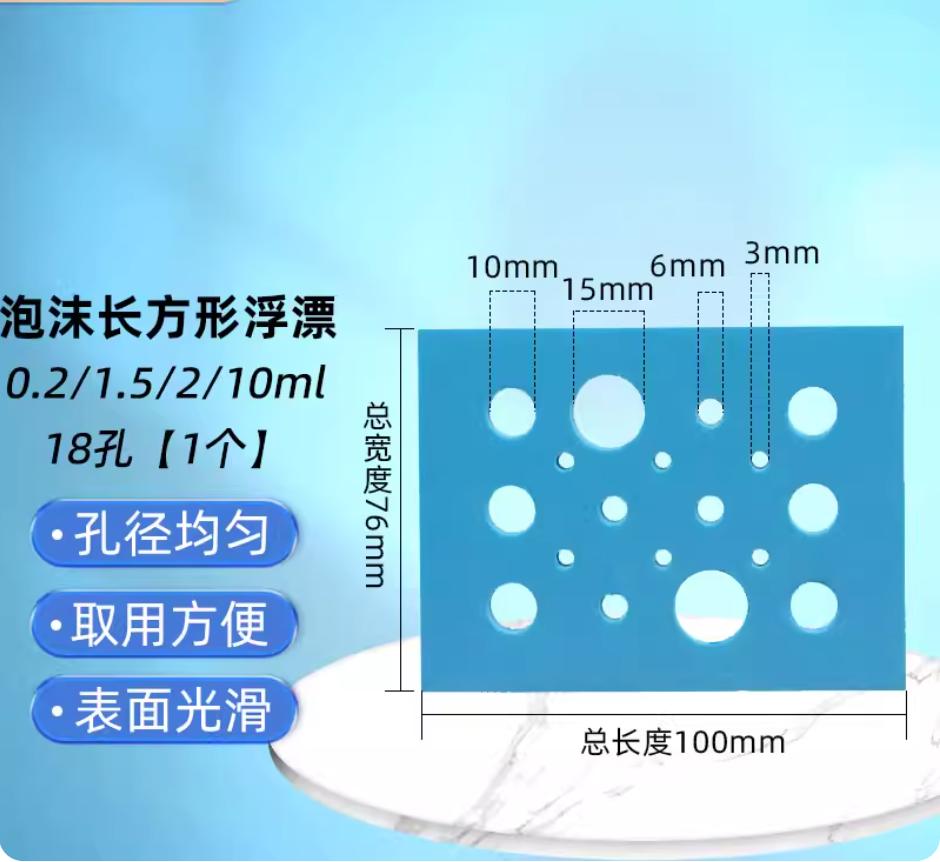 水浴浮漂18孔 泡沫长方形浮漂 适用0.2ml1.5ml2.0ml10ml离心管
