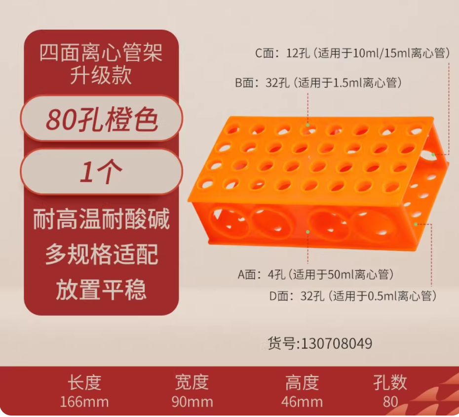 多功能四面离心管架实验室用塑料试管架橙色
