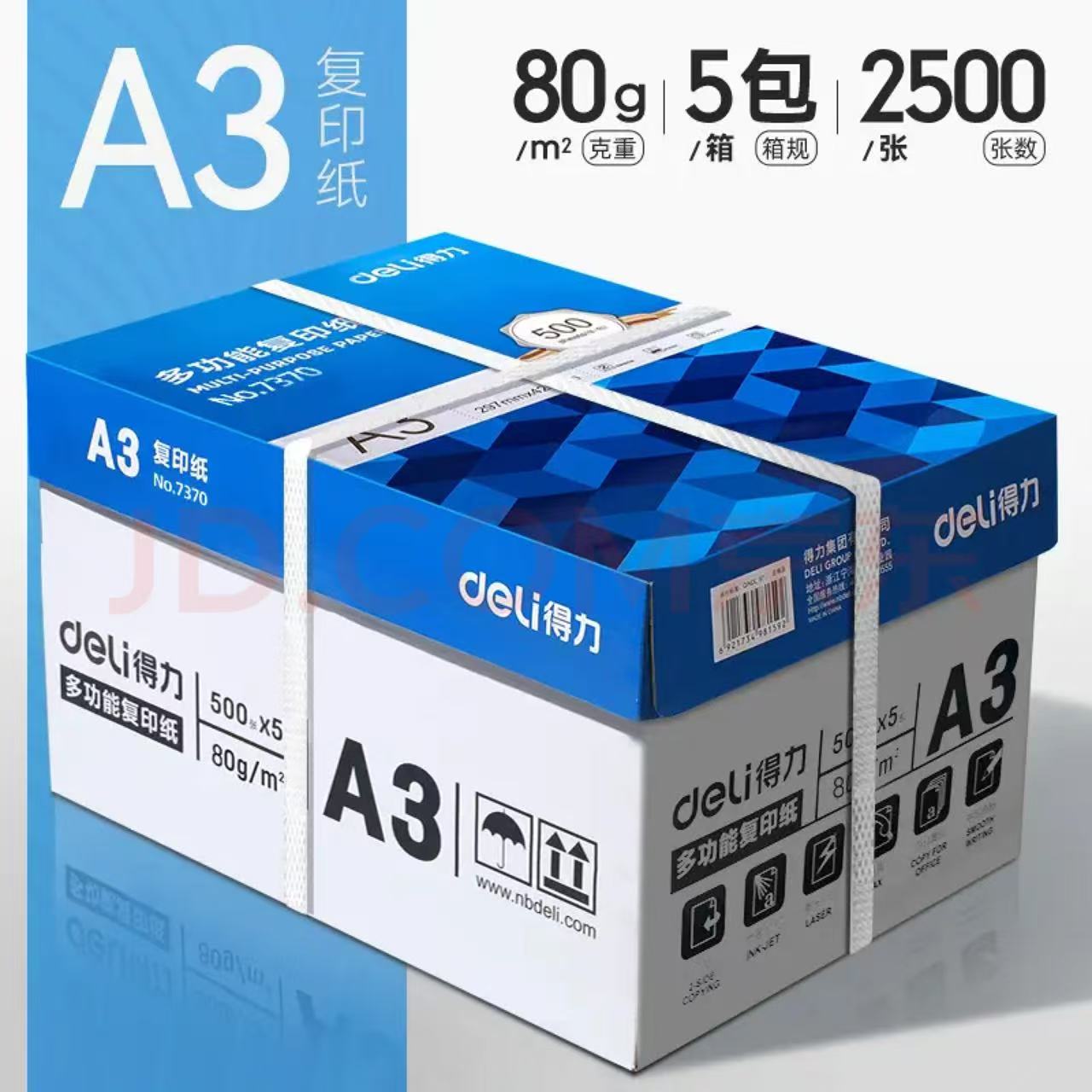 得力蓝 7370/80g-A3 复印纸 打印纸 5包/箱(此为非招标型号,请老师进行比价后购买)(定点采购)