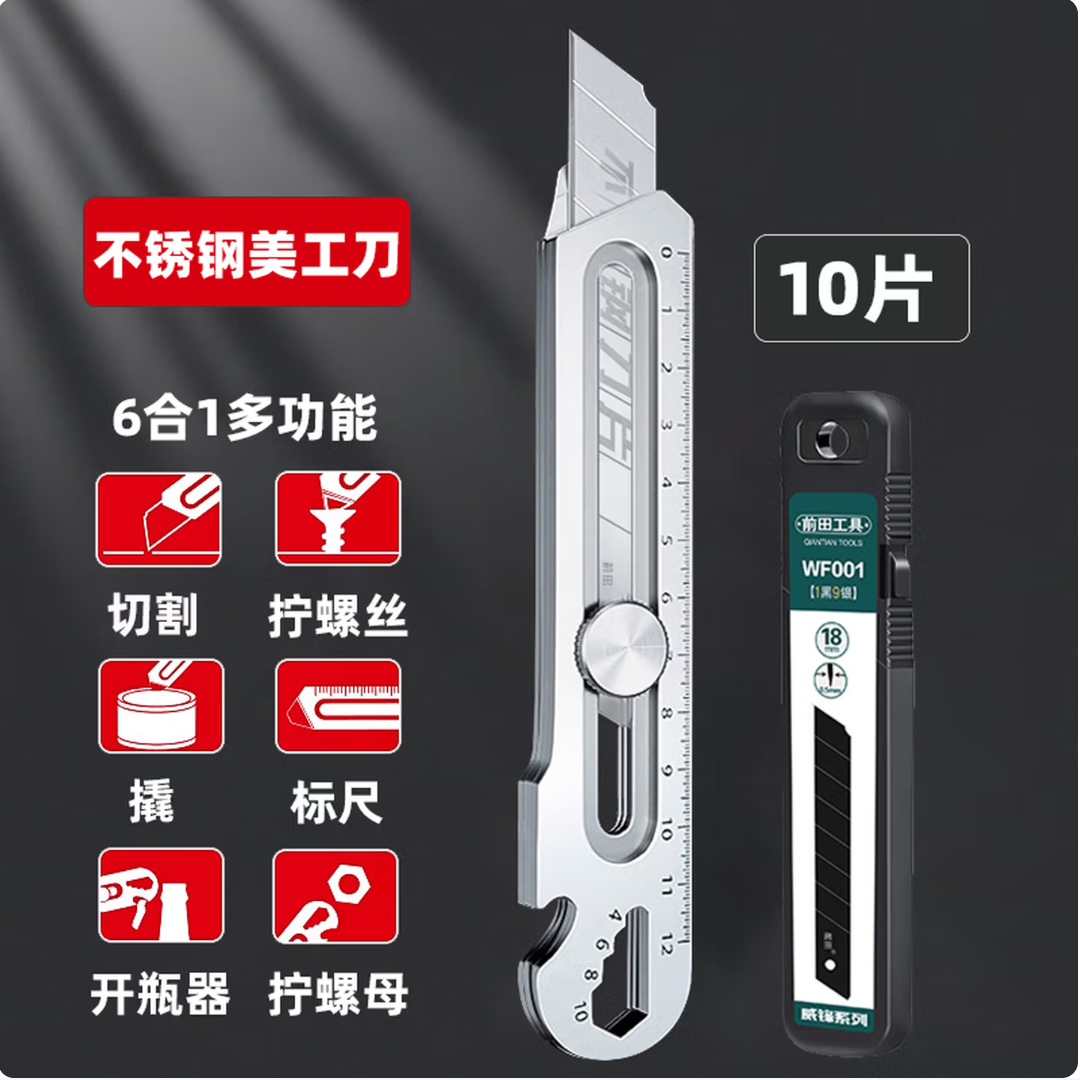 多功能美工刀不锈钢重型加厚壁纸刀多功能大号18mm裁纸刀工业级1把+10片