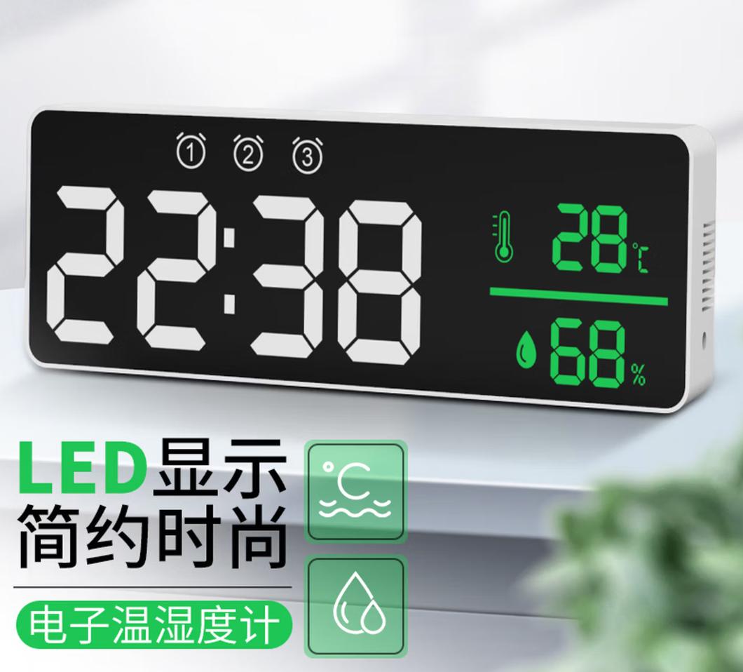 LED电子时钟温湿度计高清 带闹钟电子温湿度计 壁挂两用