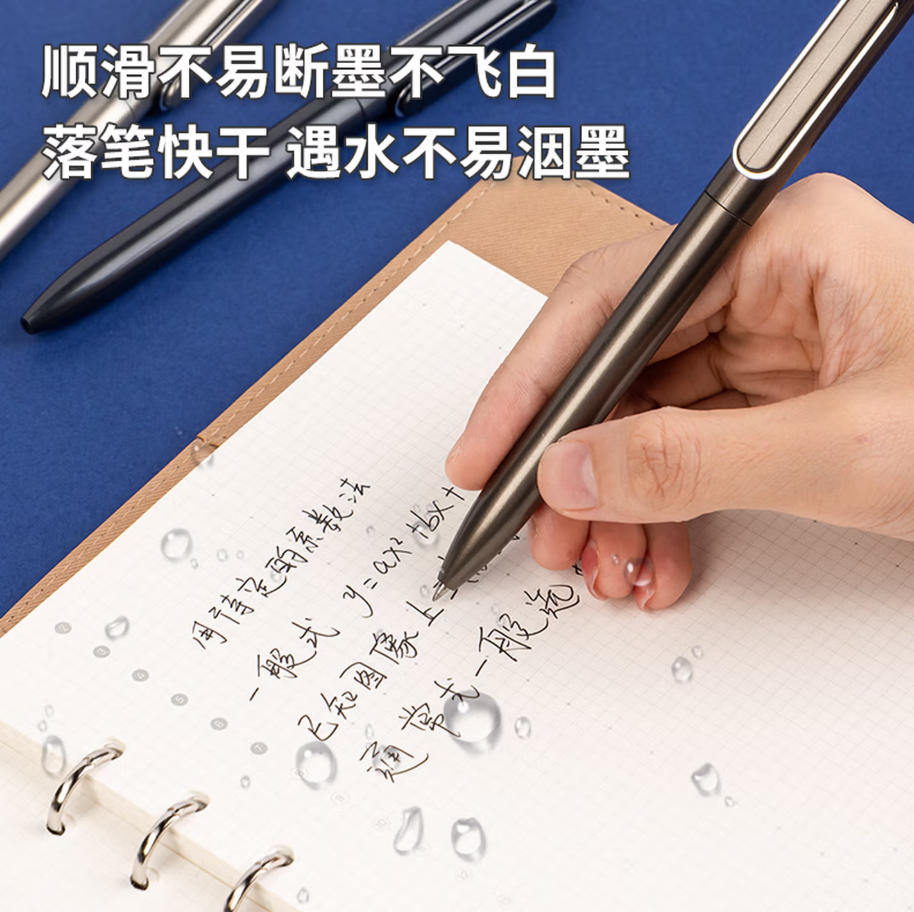 森淼办公 得力(deli)乐素臻顺滑按动中性笔签字笔 0.5mm子弹头按动笔水笔 金属喷漆 黑色 12支/盒A12