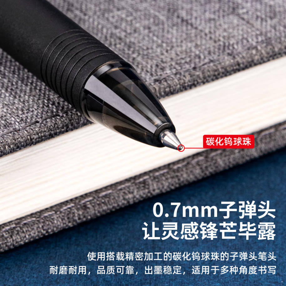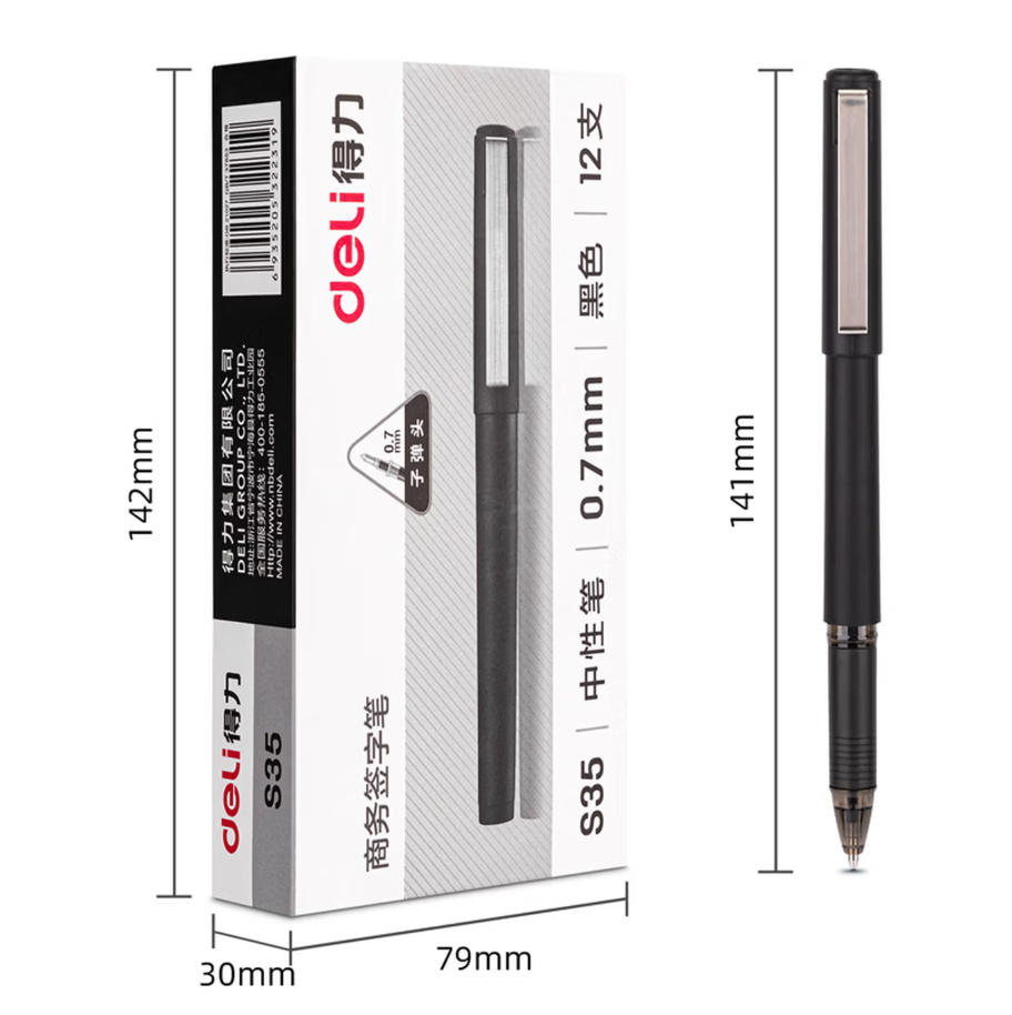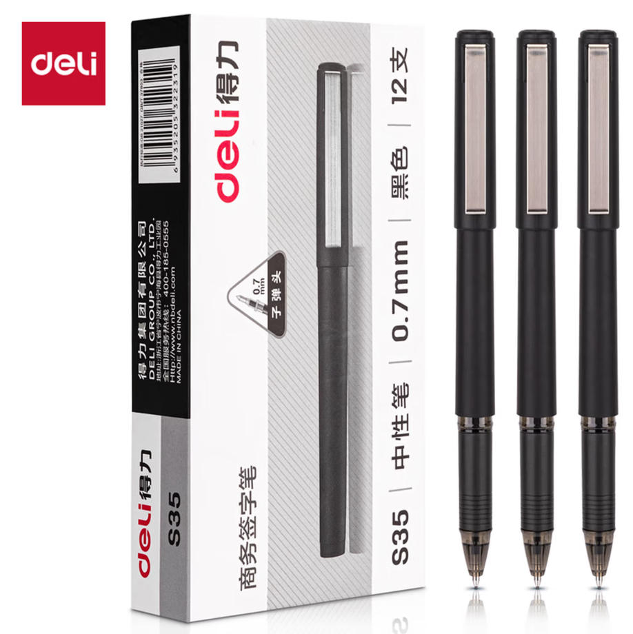 森淼办公 得力 (deli) 拔帽 中性笔 磨砂笔杆 水笔 签字笔 0.7mm 子弹头 品质 办公用品 黑色 12支/盒 S35