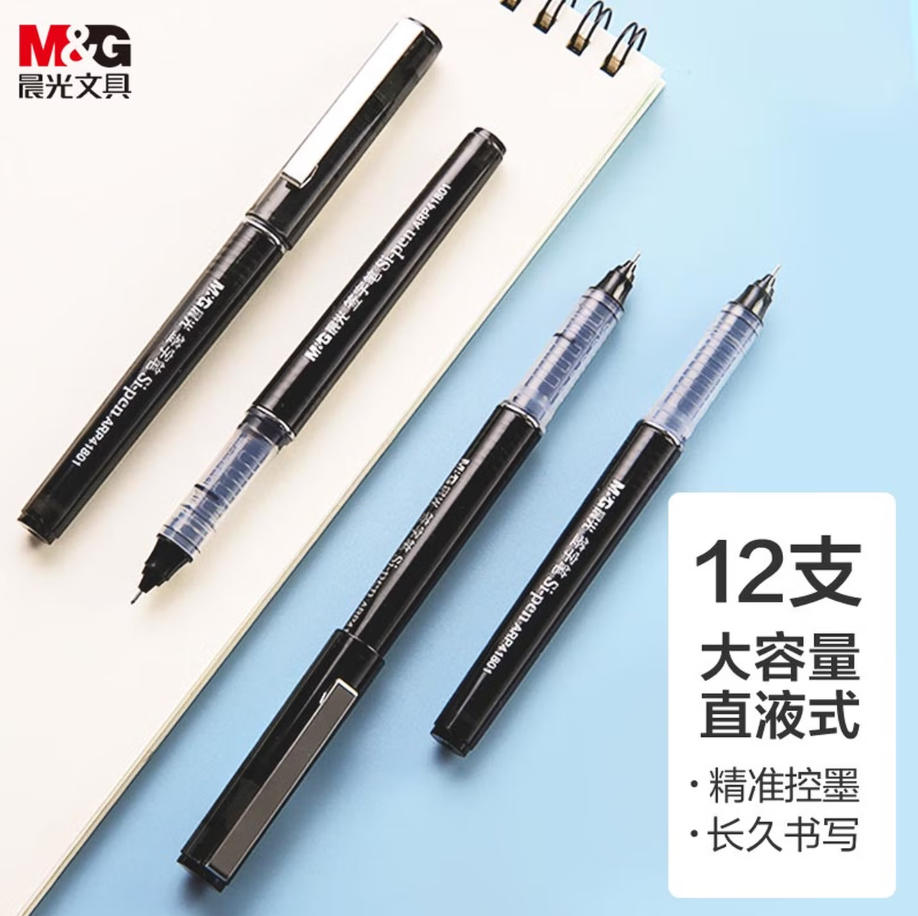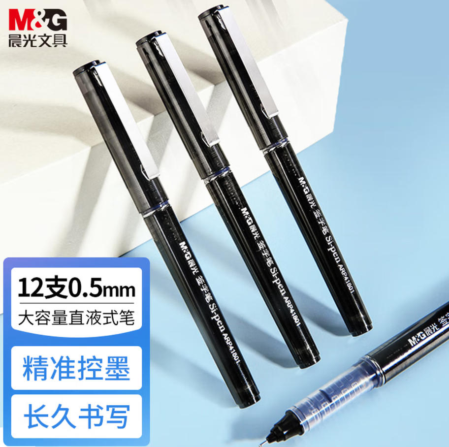森淼办公 晨光(M&G)直液笔0.5mm黑 签字笔 办公 全针管 中性笔 水笔 走珠笔 ARP41801A 12支装