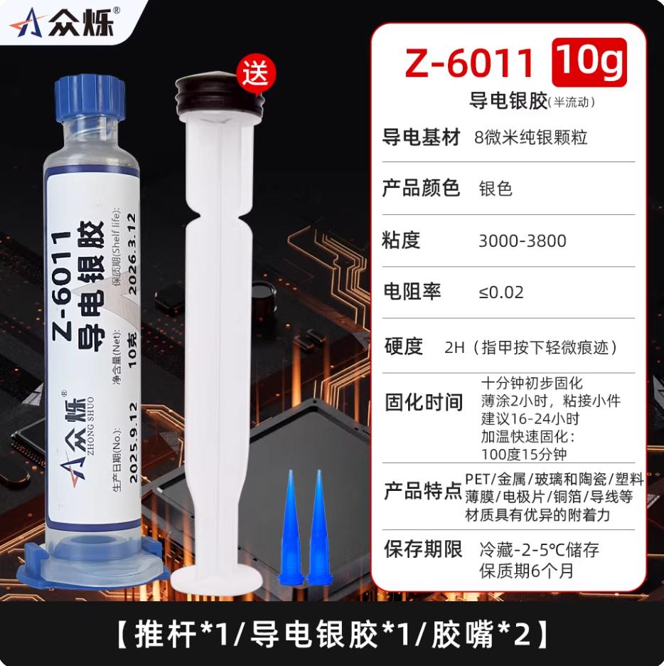 导电银胶 银导电胶导电胶常温固化导电银胶银浆焊接速干环氧导电胶粘合剂金属导电胶水电子元件焊点线路板导线z6011 10g