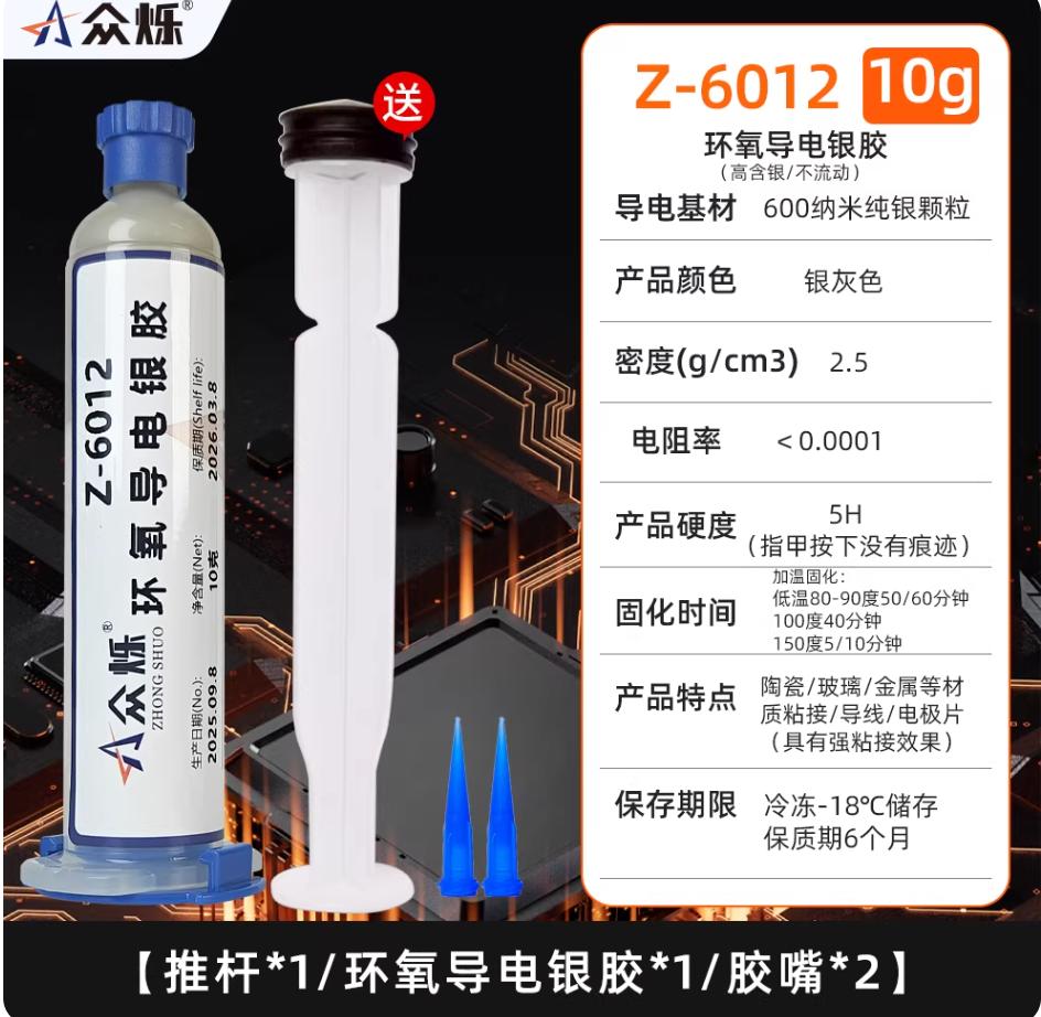 导电银胶 银导电胶导电胶常温固化导电银胶银浆焊接速干环氧导电胶粘合剂金属导电胶水电子元件焊点线路板导线z6012 10g环氧导电胶加速焊锡
