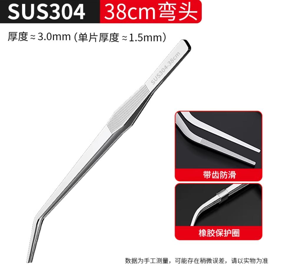 镊子304不锈钢超长大号加厚带齿加长夹子长夹持工具超长镊子38cm弯头