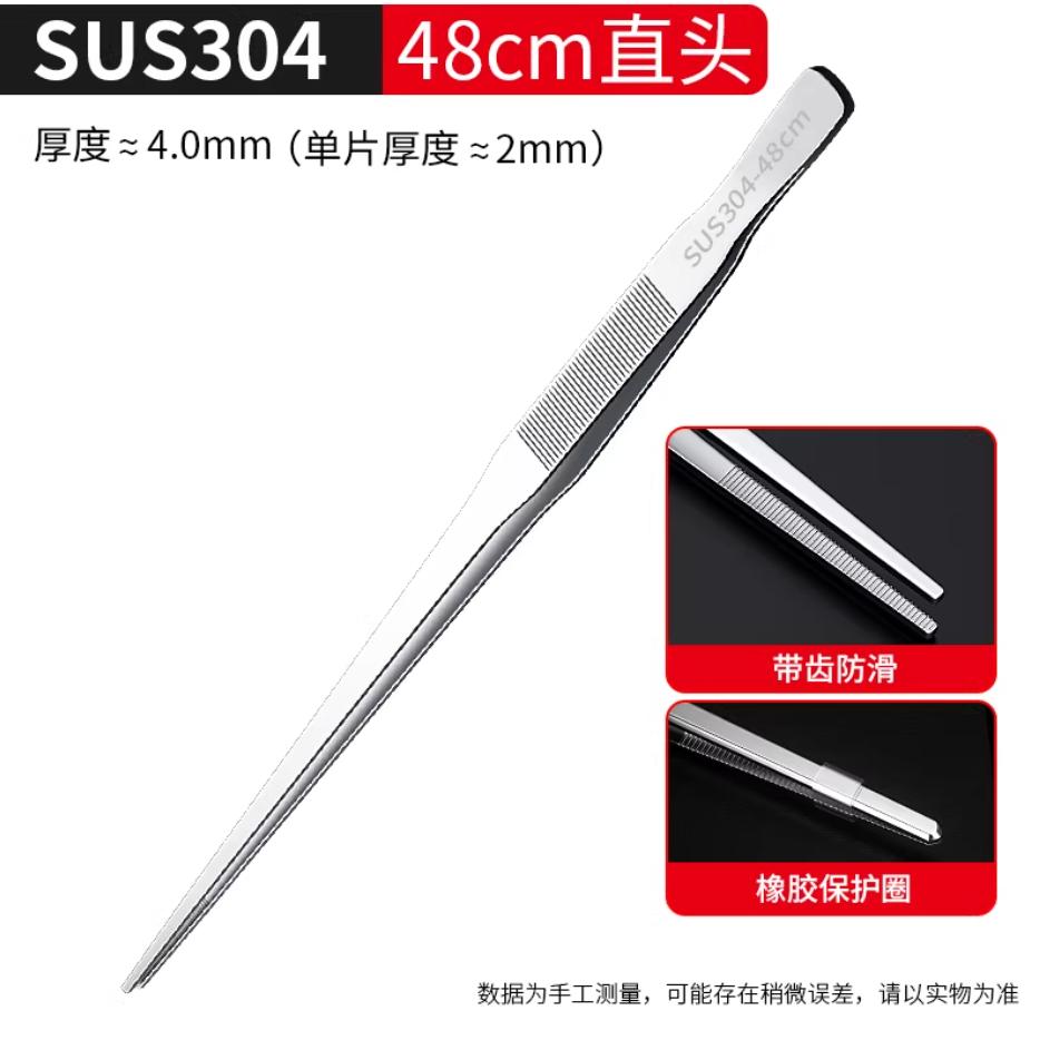 镊子304不锈钢超长大号加厚带齿加长夹子长夹持工具超长镊子48cm直头