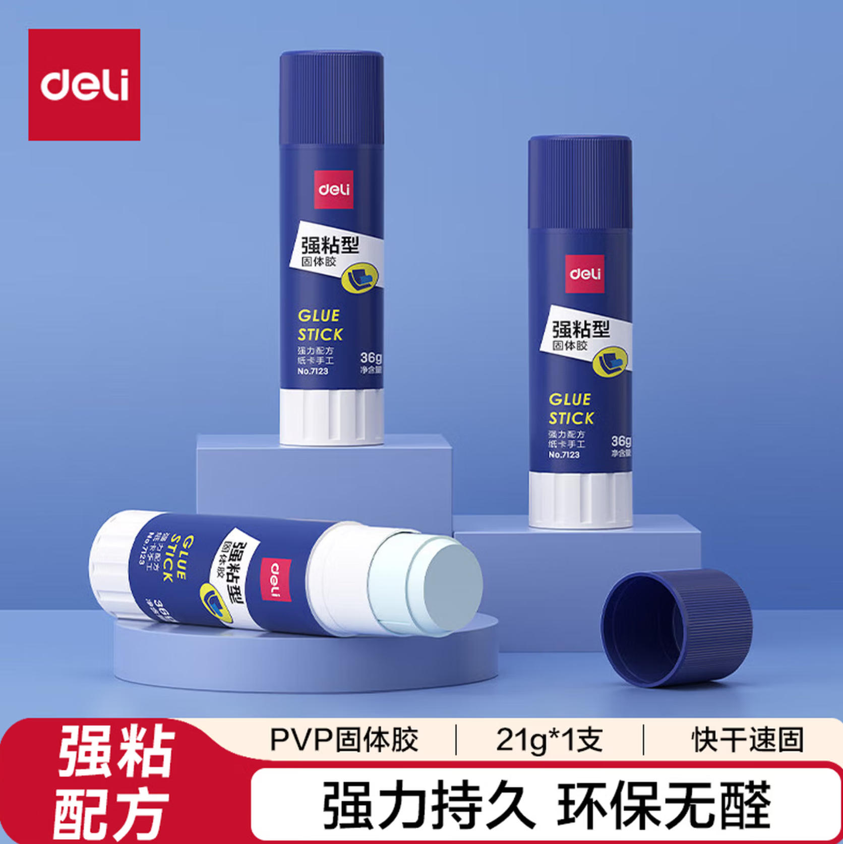 森淼办公 得力 21g强粘性 PVP固体胶水 无甲醛配方 快干强力胶棒 7122