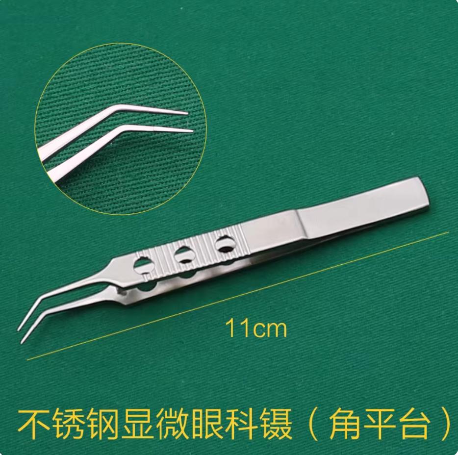 医用眼科器械显微镊子不锈钢显微镊手术工具外科手术镊扁柄三孔不锈钢角平台 无勾
