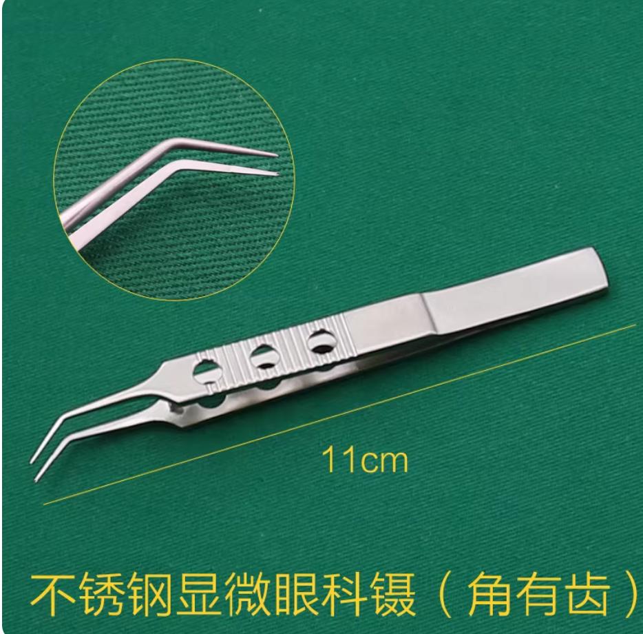 医用眼科器械显微镊子不锈钢显微镊手术工具外科手术镊扁柄三孔不锈钢角有齿 有勾