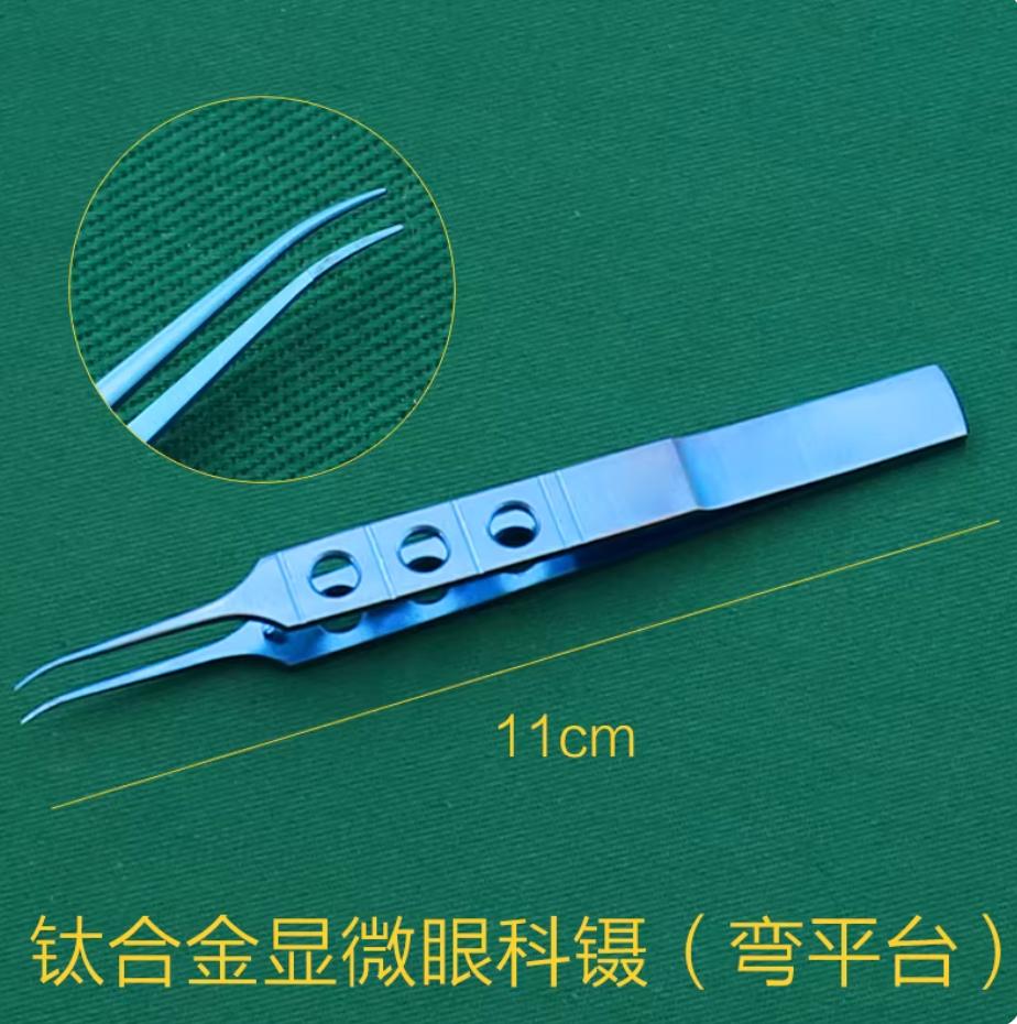 医用眼科器械显微镊子手术工具外科手术镊扁柄三孔钛合金显微镊弯平台无勾