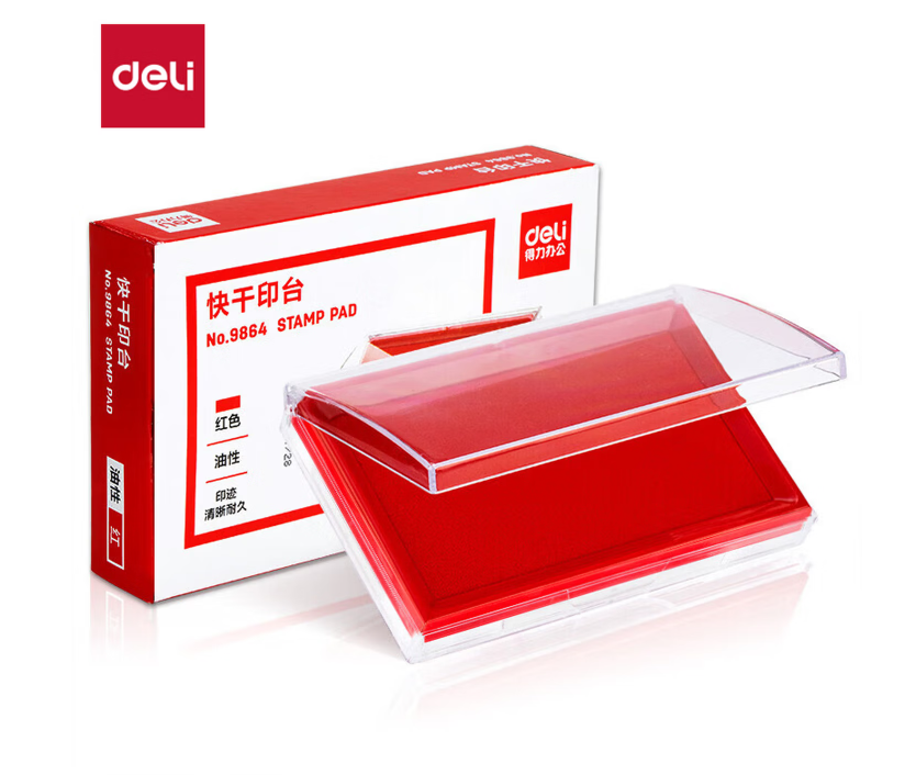 得力(deli)【超级爆款】内盘面116*66mm透明外壳方形快干印油印台印泥 财务办公用品 红色9864