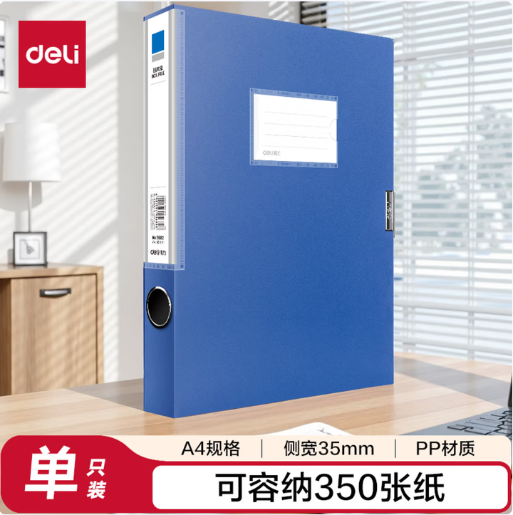 得力(deli)1只35mmA4塑料文件盒档案盒加厚资料盒文件资料财务凭证考试收纳 5682